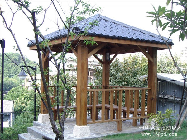 凉亭的材质各有不同,造型也别具风格,不同的环境与周围设置,要求了不同凉亭风格。传统的凉亭多以砖木结构为主,现代凉亭有了更多的选择,如水泥、塑木、防腐木等。相对来说防腐木凉亭的应用是最多,因为防腐木凉亭所使用的是纯天然的木材作为主要建造材料,这样做是不仅环保而且体现了凉亭本身的休闲性的特质。常用于建造凉亭的防腐木材有:俄罗斯樟子松、美国南方松、芬兰防腐木、菠萝格防腐木等。作为有着‘世界顶级结构木材’美称的南方松防腐木,是防腐木凉亭建造的理想木材,用南方松建造的防腐木凉亭结构稳定、耐用性好而且外形美观大气。