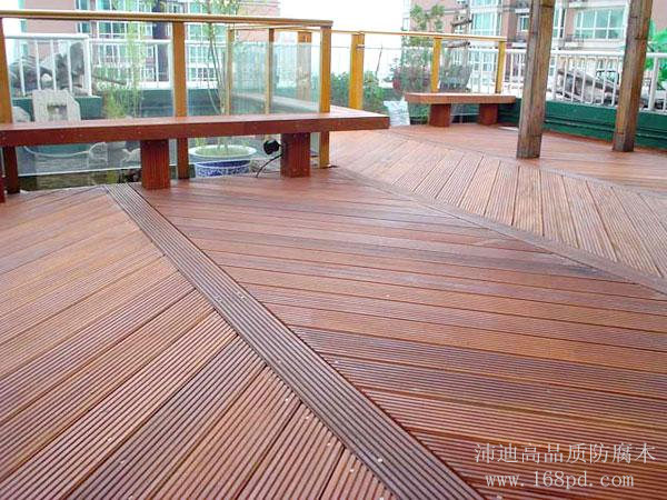 菠萝格防腐木地板 菠萝格防腐木地板是一种高端的户外用实木地板,由于木材定位较高,因此建造菠萝格防腐木地板的成本也比较高,相对于其他防腐木户外地板,菠萝格户外地板价格要高一些。不过追求品质与要求成本是不可能统一的,有些高档场所必须要用过高档木地板,这时候不可能为了节约一部分费用而是用普通的防腐木地板。是用硬木天然防腐木地板才能够突出高品质的特色与环保的理念。