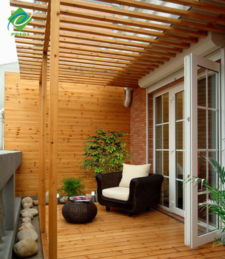阳台是家庭住宅中不可缺少的一部分,它是老人小孩的活动场所,因而要有防滑功能;也是洗晒的工作场所,因此要有防潮,防水,防蛀;也是谈笑聊天休息打盹的休闲娱乐场所,所以格调要美观。既要美观又要安全性强,所以防腐木更多的成为了大众装修的首选。
